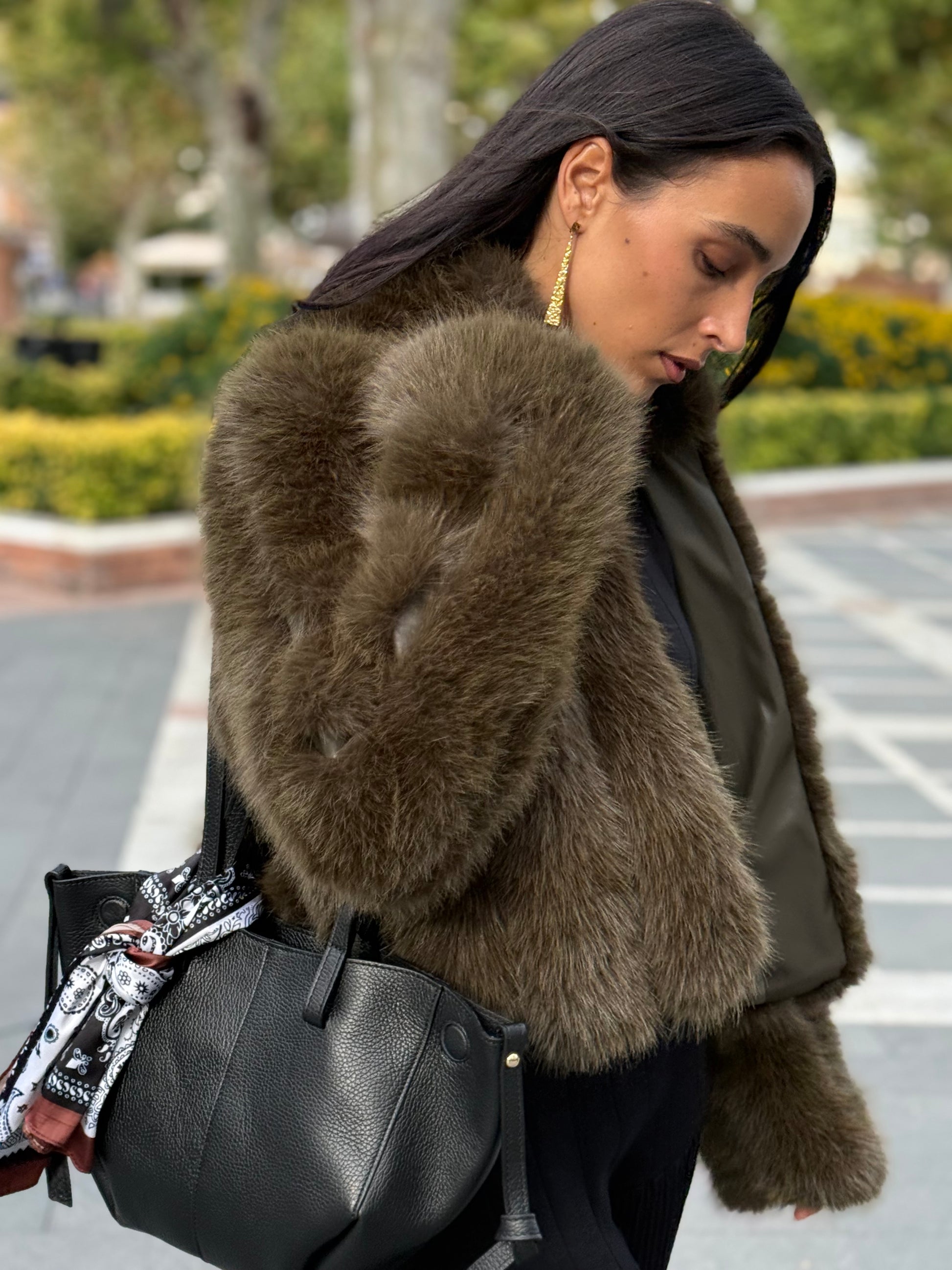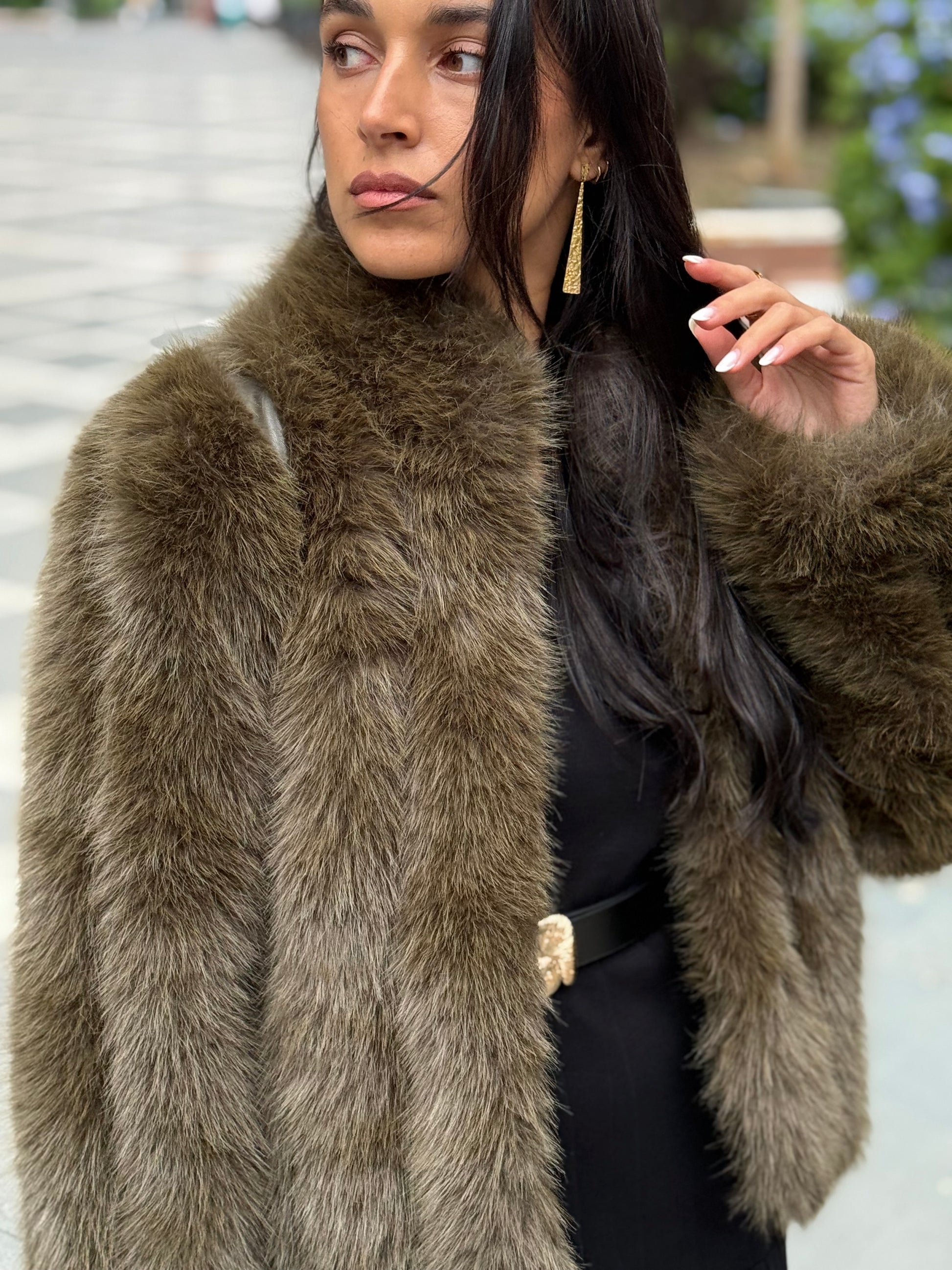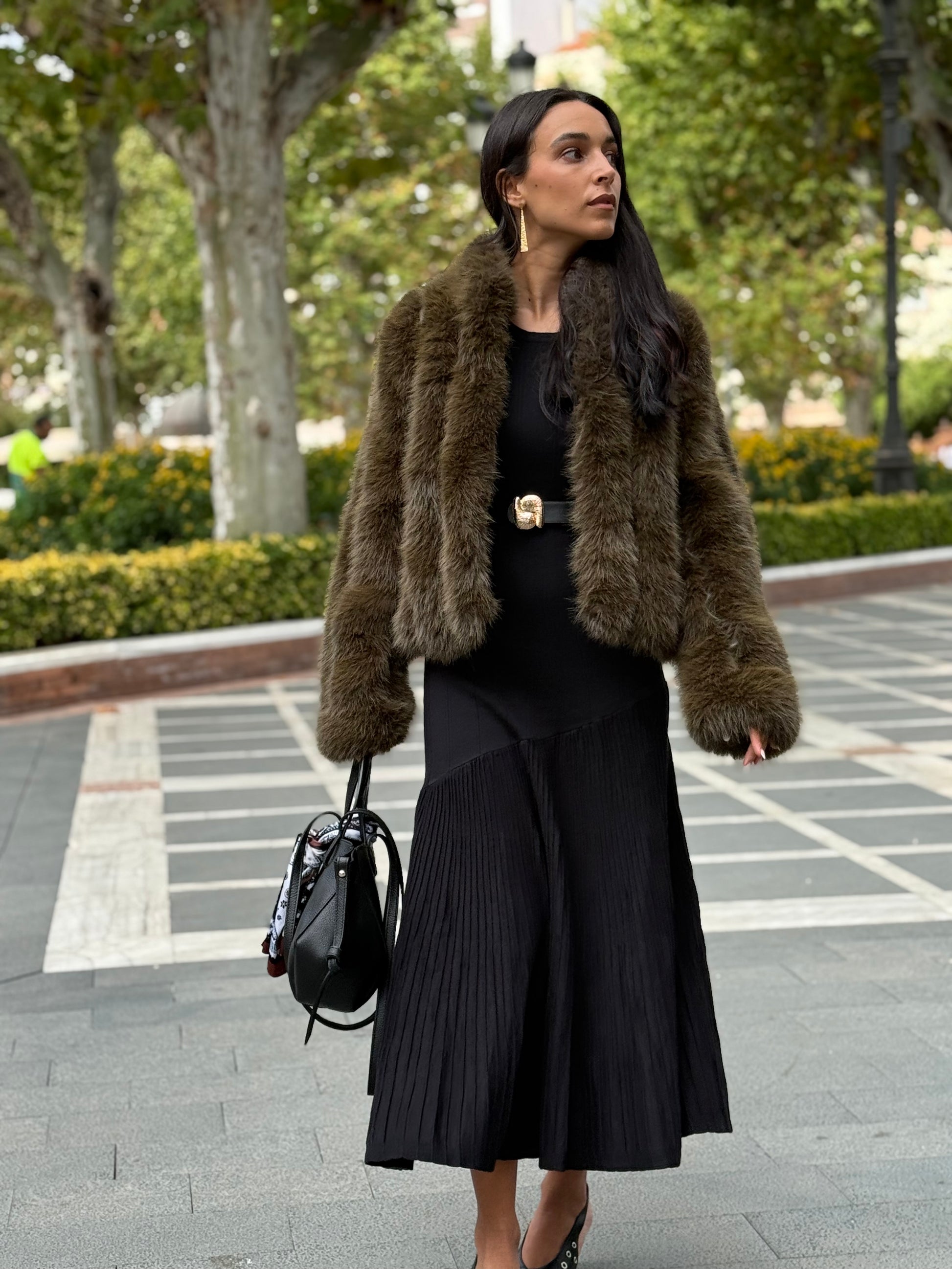 Chaqueta de pelito, bolsillos laterales. La modelo mide 1,65 usa talla 36.