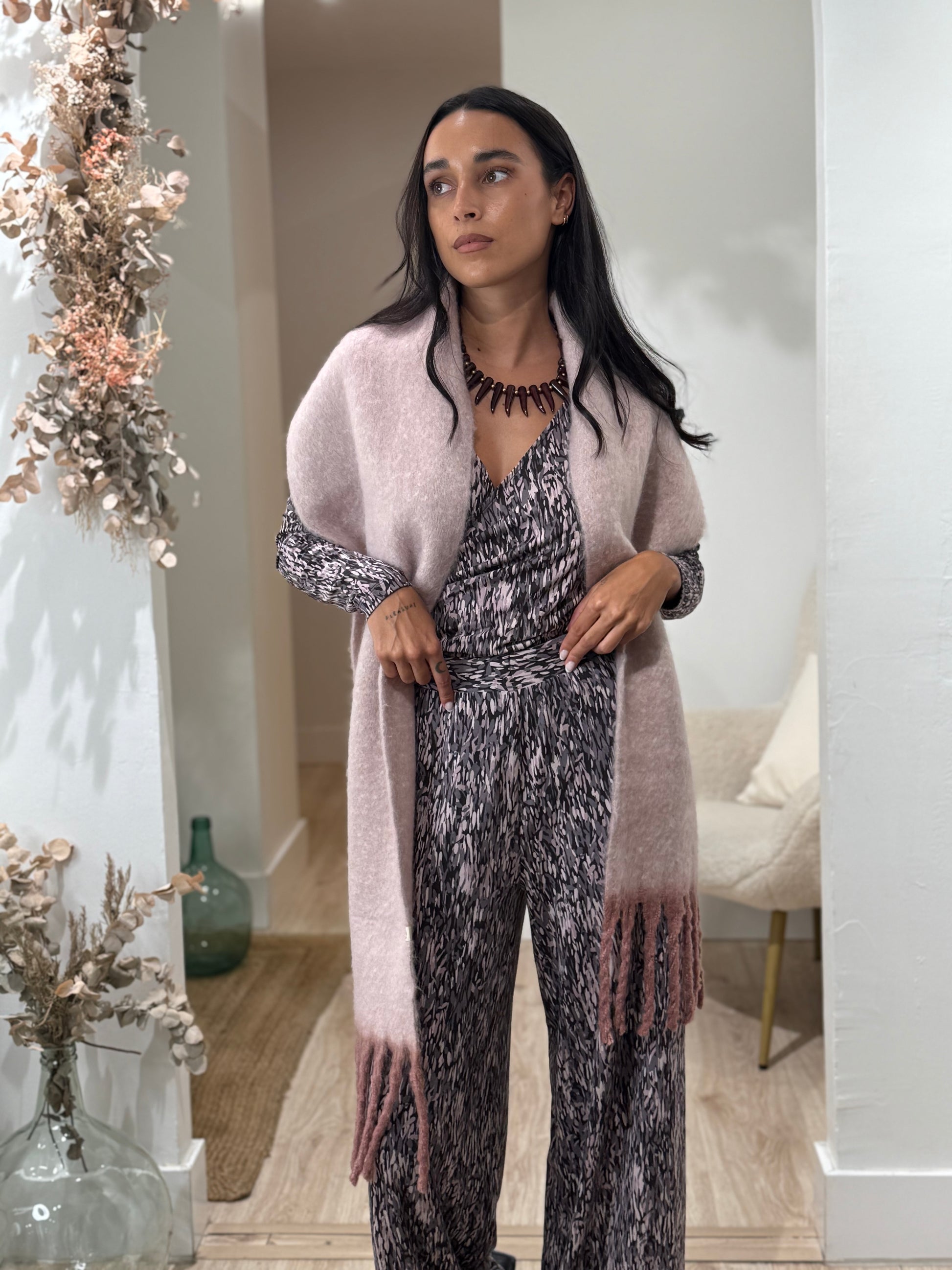 Bufanda de tacto ultrasuave, gruesa y ligera, con diseño plano de acabado jaspeado y flecos a contraste que aportan un toque especial. Una pieza cálida, envolvente y fácil de combinar, perfecta para completar tus looks de invierno con colores lisos.