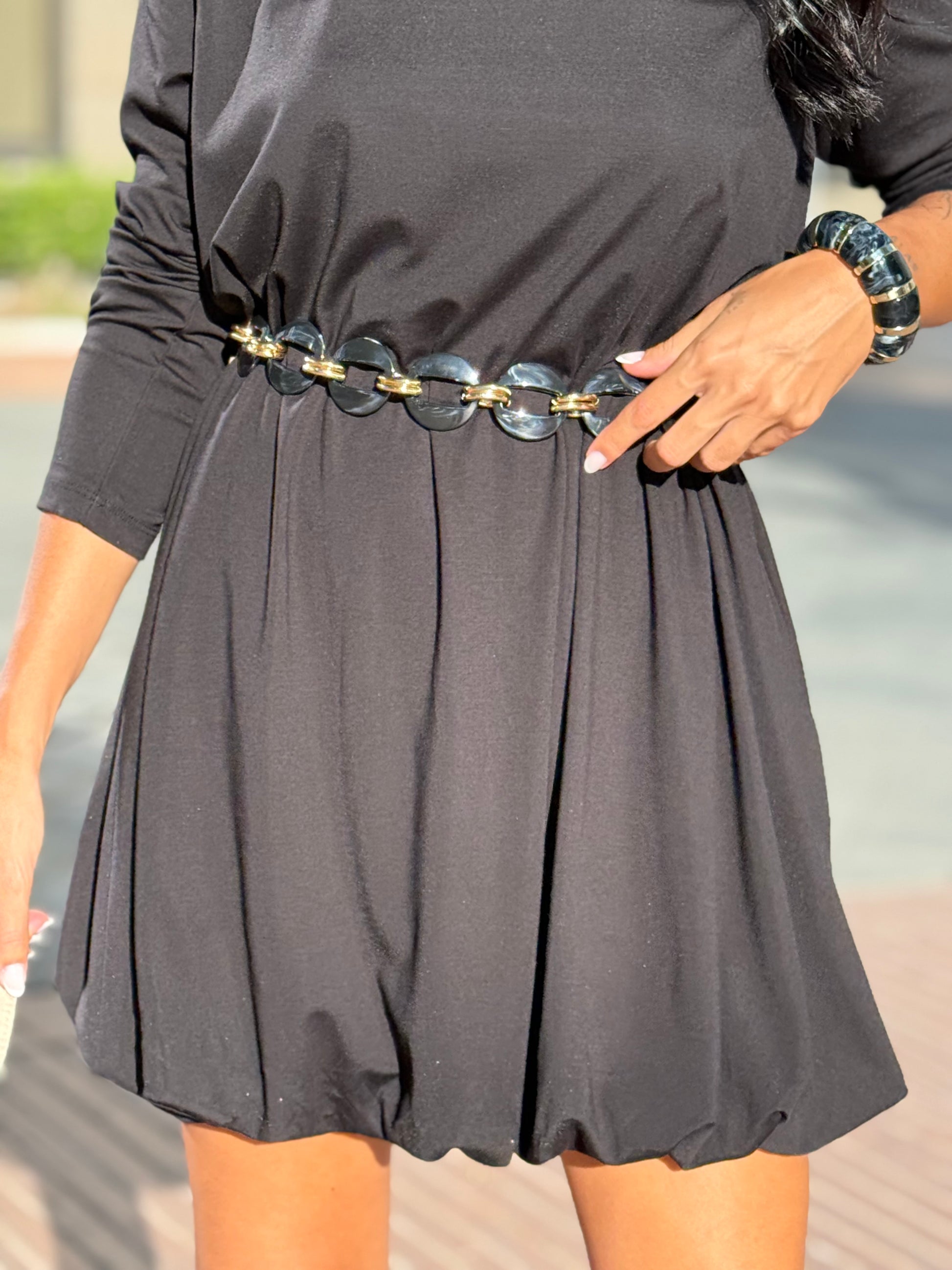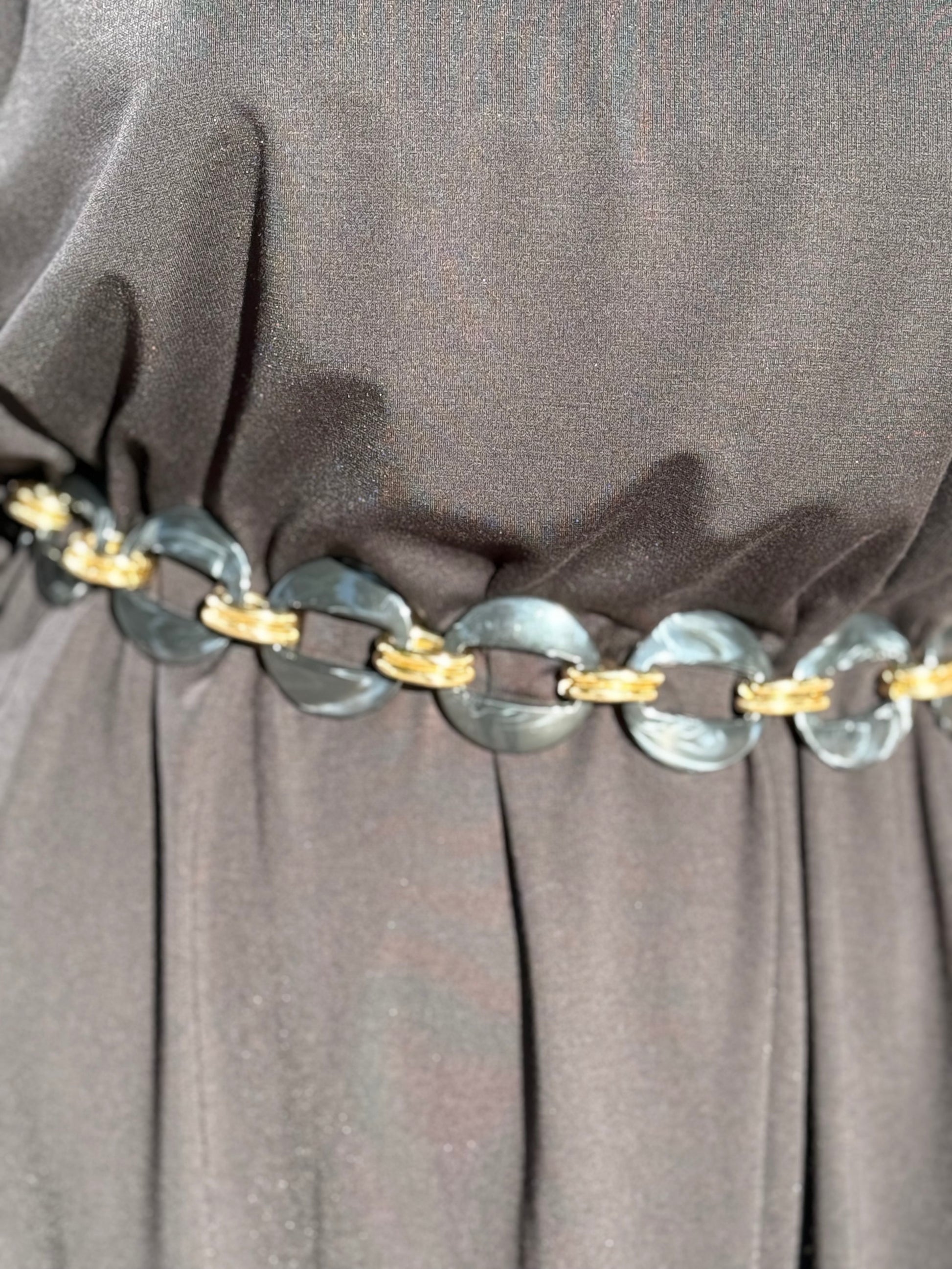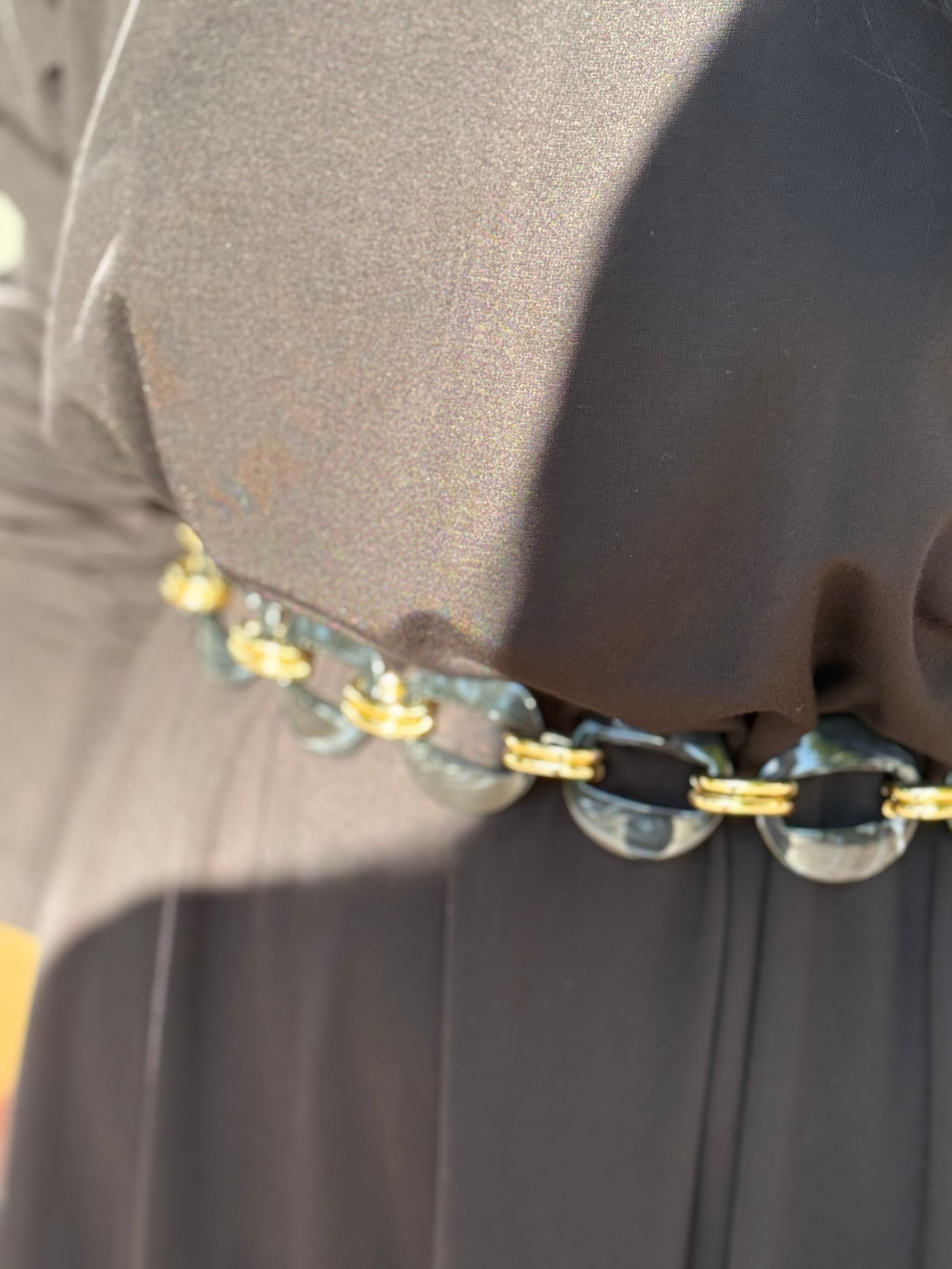 Cinturón ajustable de resina efecto carey y metálico dorado.