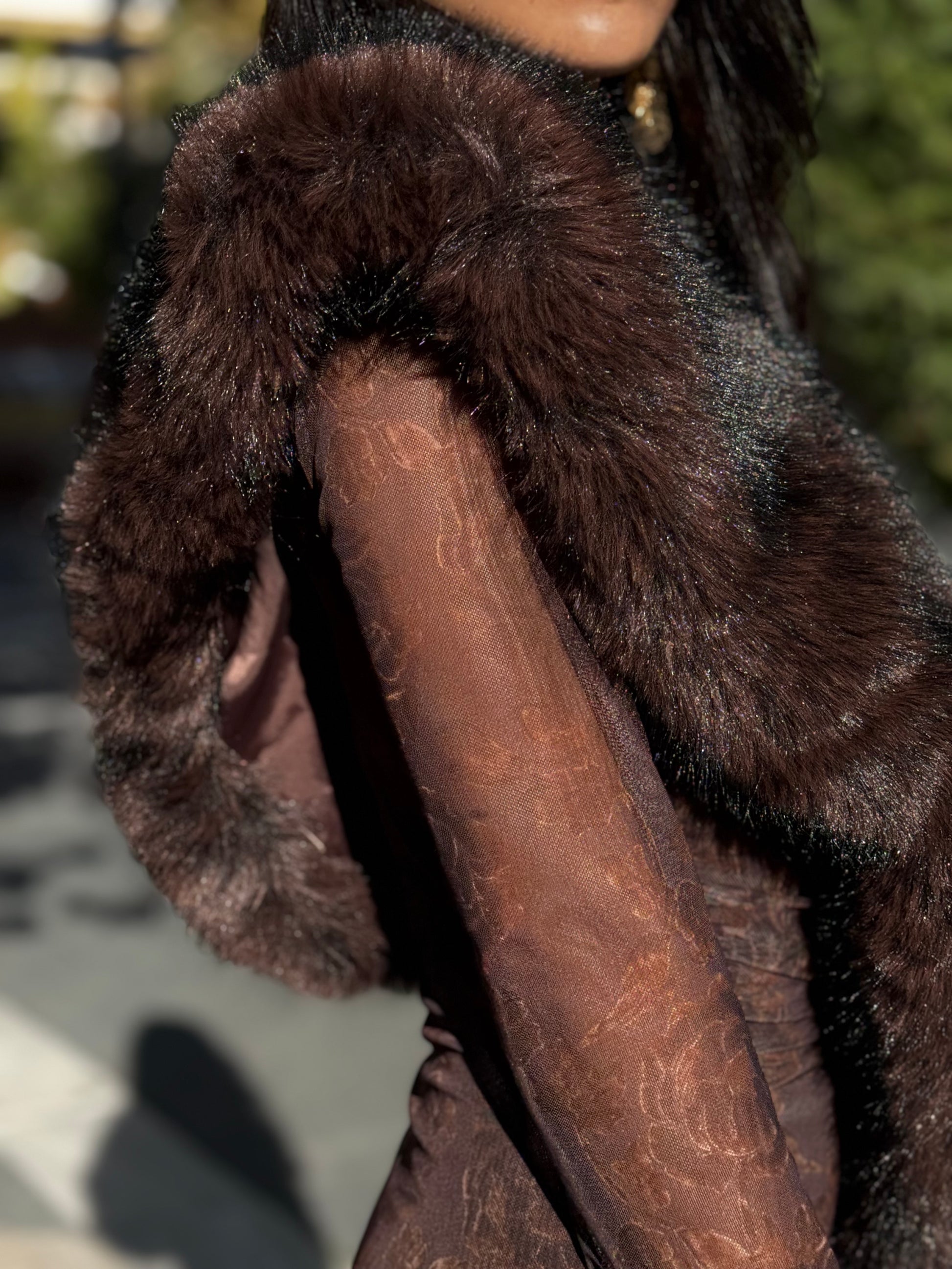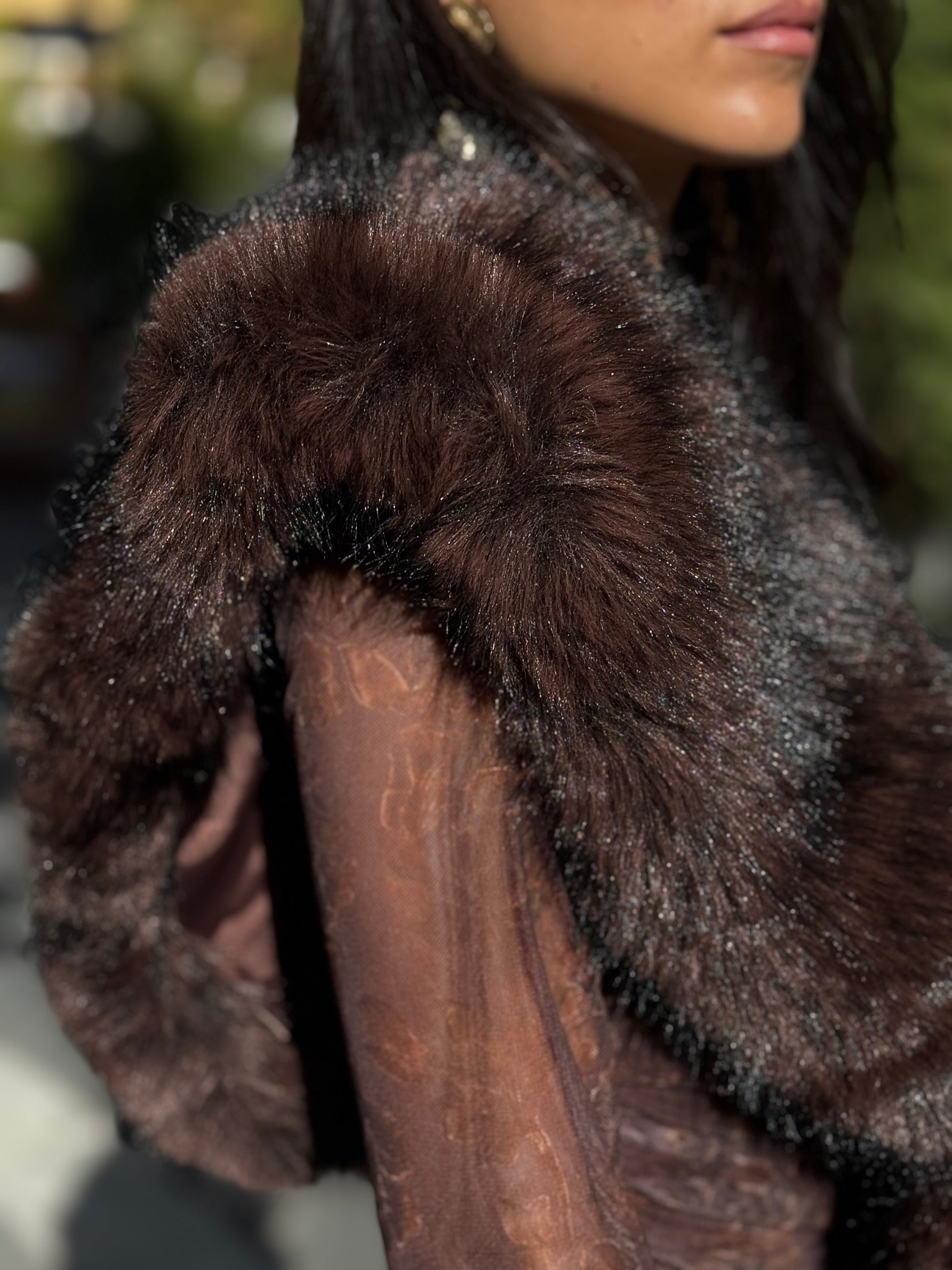 Estola/cuello de pelo en color marrón con pinza para sujetar.