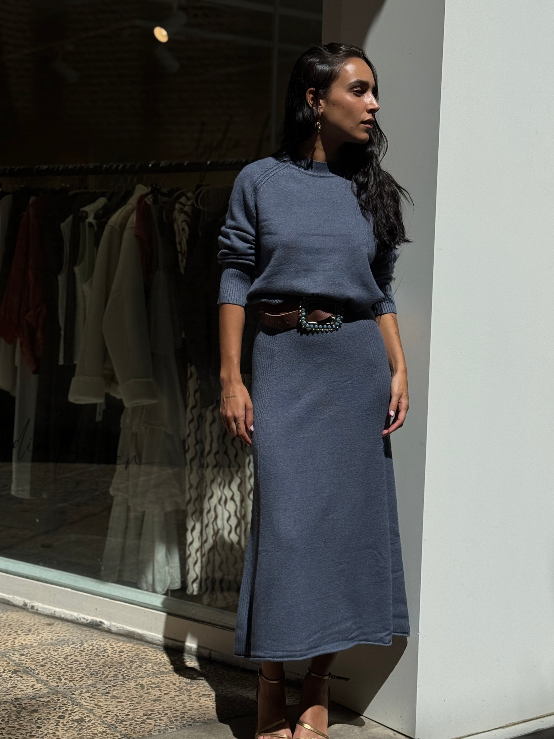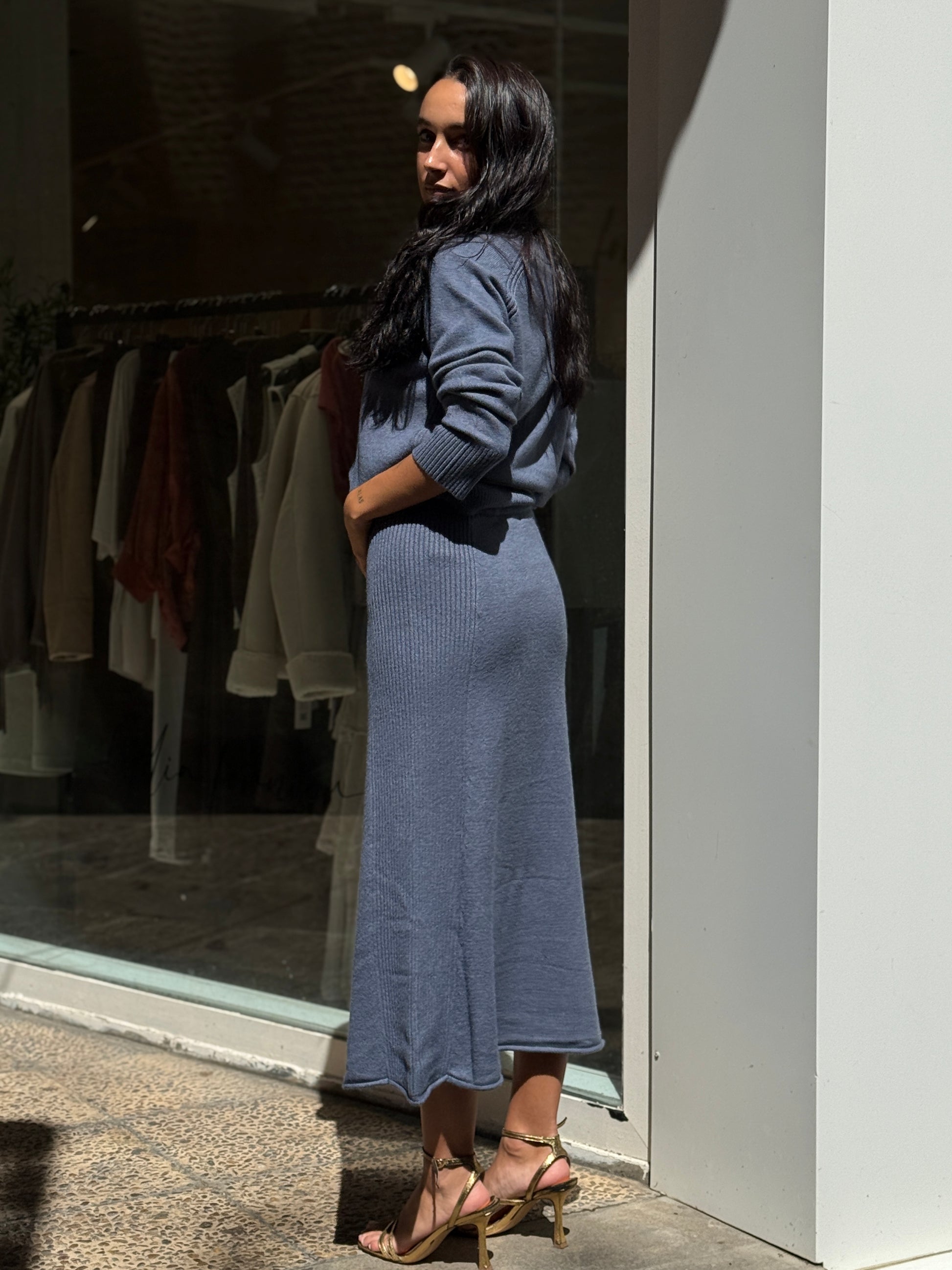 Falda de punto flexible de punto gustoso al tacto. La modelo mide 1,65 y usa talla 36 y lleva XS.
