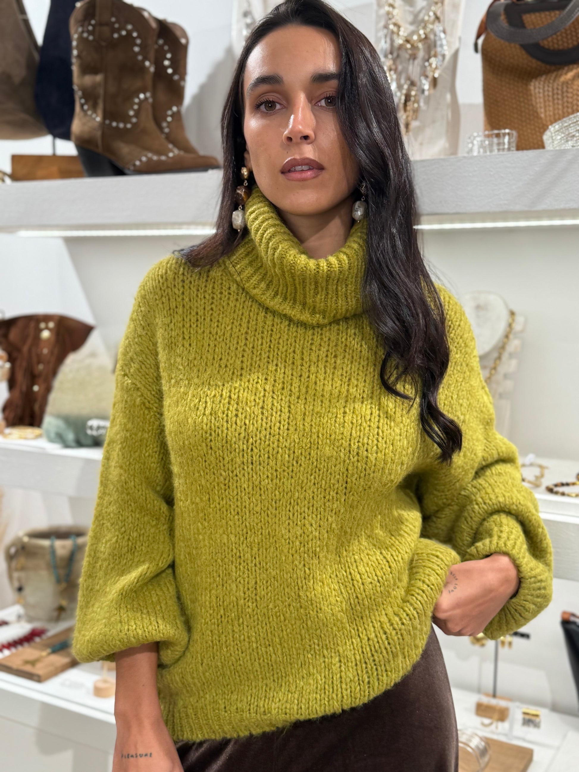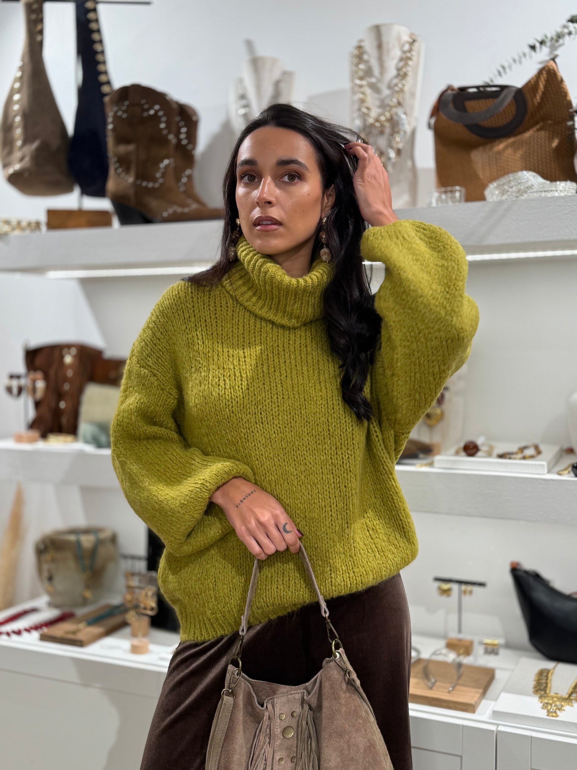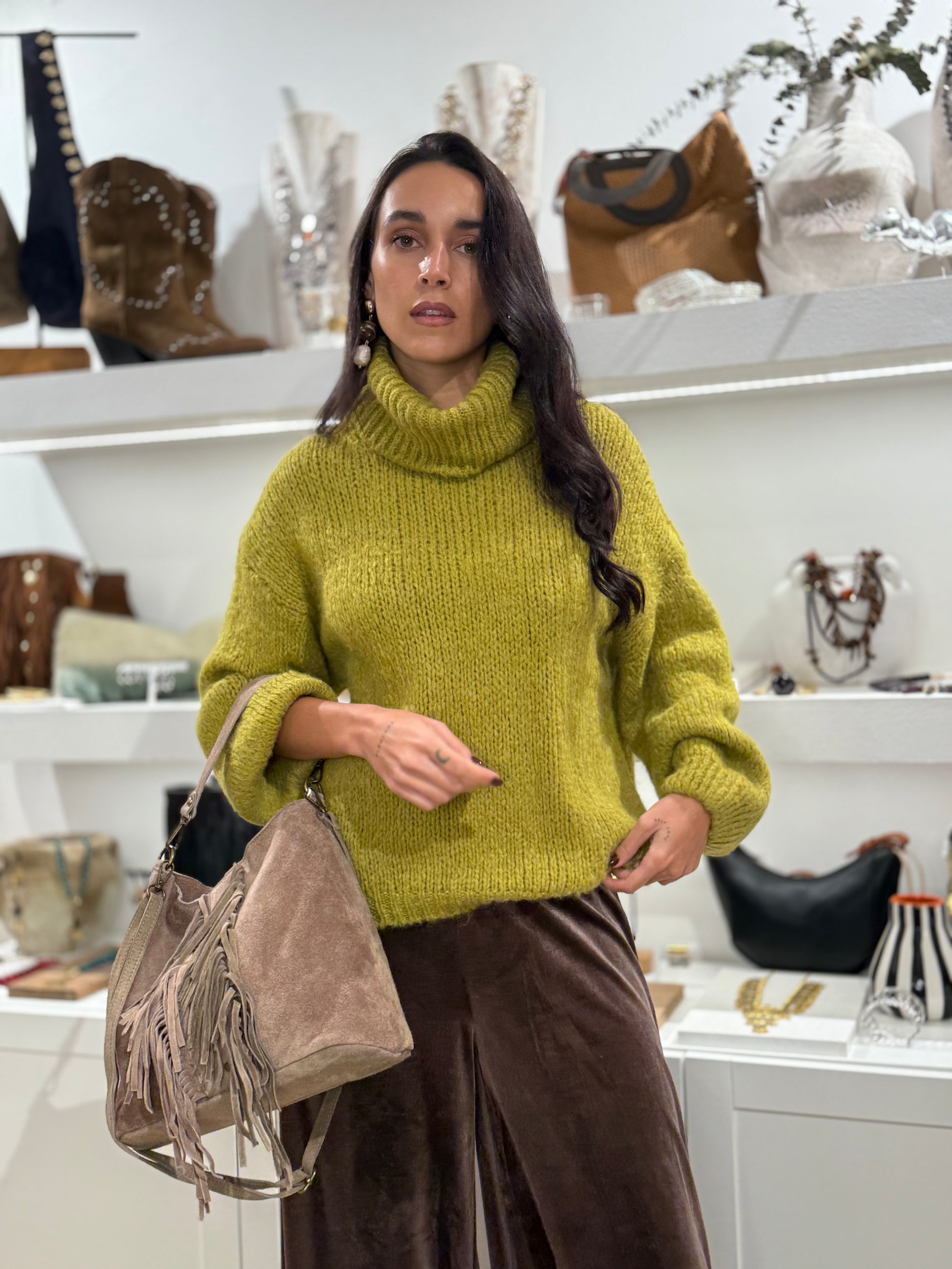 Jersey fluido, cuello vuelto agradable al tacto. La modelo mide 1,65 y usa talla 36.