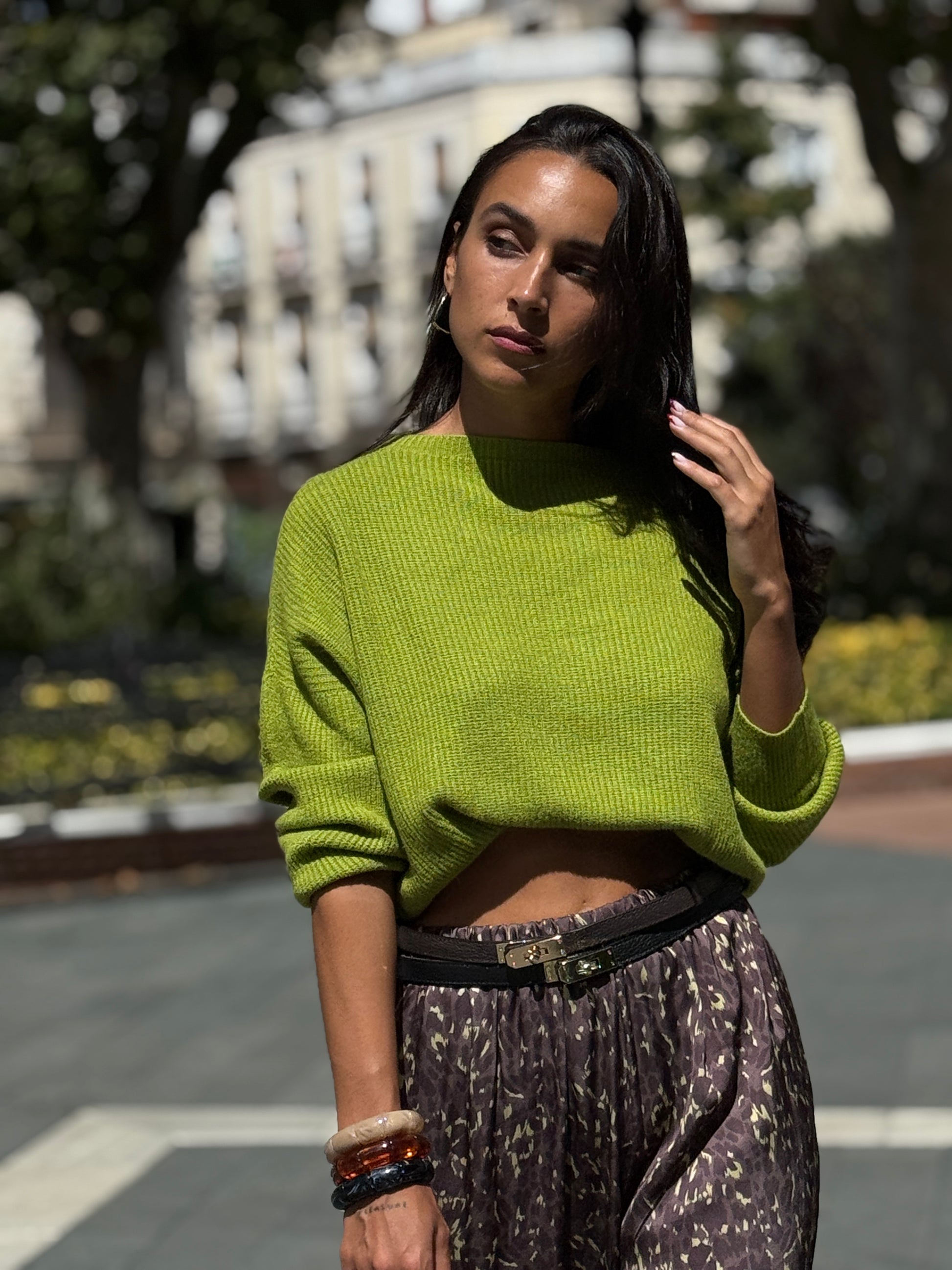 Jersey de punto gustoso al tacto. La modelo mide 1,65 y usa talla 36.