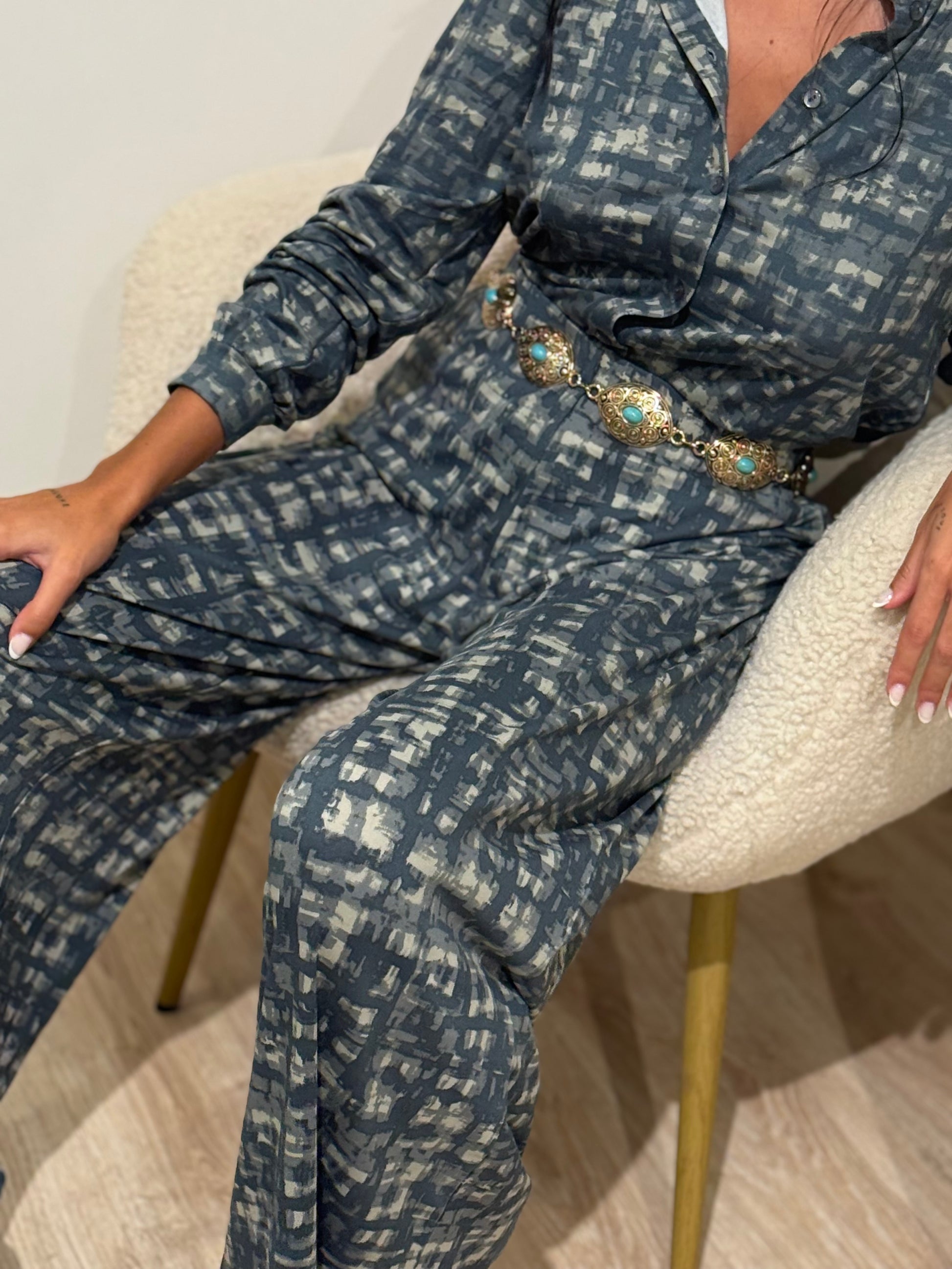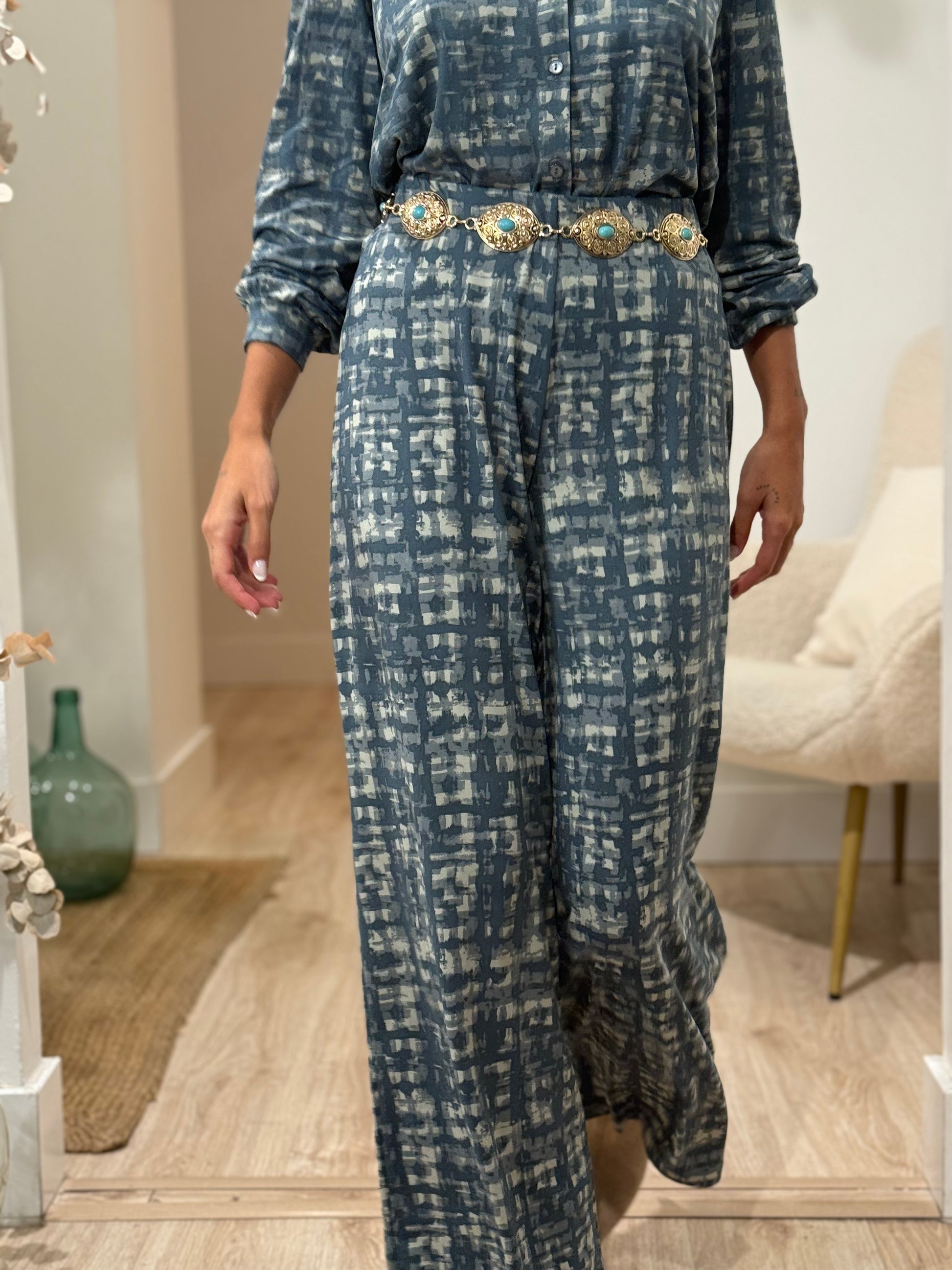 Pantalón wide leg de pierna ancha confeccionado en viscosa reciclada elástica. Su diseño sin cierres realza la comodidad, mientras que el estampado de inspiración abstracta añade una nota desenfadada. Una opción actual y funcional.