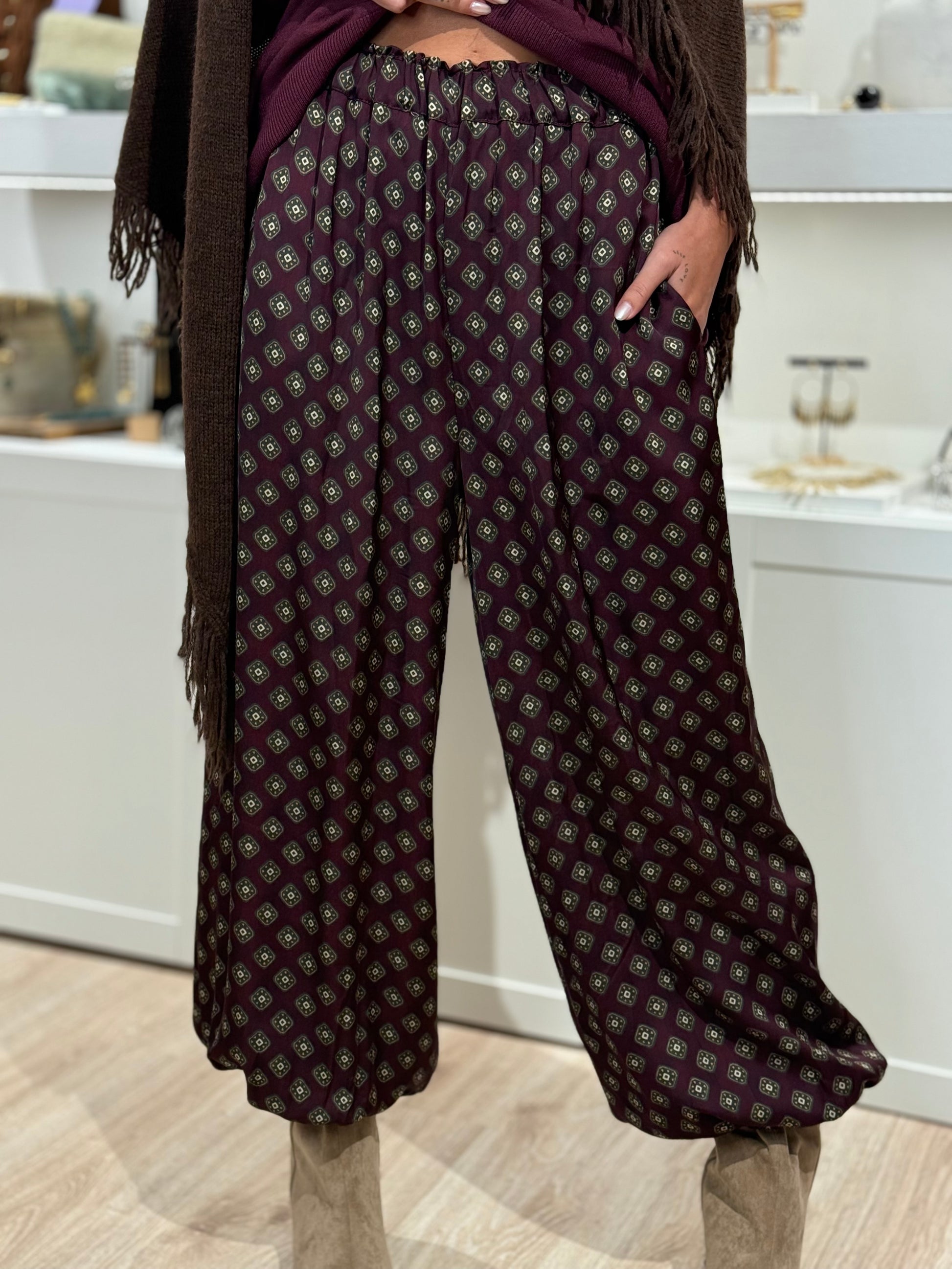 PANTALON SATINADO ESTAMPADO BURDEOS